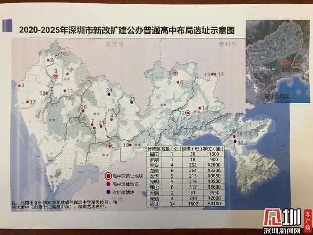 ▲2020-2025年深圳市新改扩建公办普高布局选址示意图。