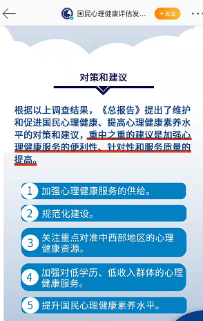 “健康中国2030”规划纲要中指出:要加强心理健康服务体系建设和规范化管理,加大全民心理健康科普宣传力度,提升心理健康素养。
